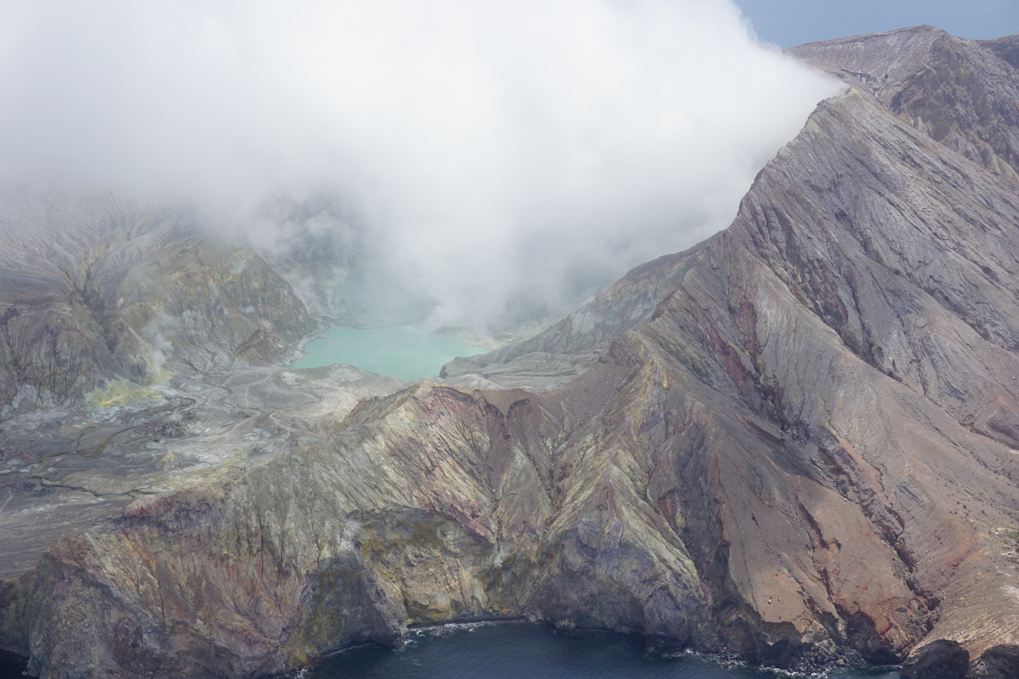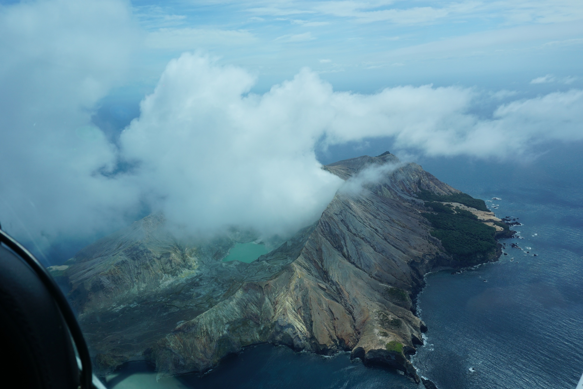 Nachdem alles erledigt war ging es los…es war einfach grandios und ist nicht so einfach in Bilder zu fassen. Wir flogen ca 1h in total privater Atmosphäre. Erst über Whale Island, drehten dort eine Runde um den gesichteten Wal zu begutachten und dann ging es weiter zu White Island. Einfach gigantisch der Vulkan. Und an einer Bucht sieht man tatsächlich noch die Reste der Schwefelmienen, die dort einst standen. So genug geschwafelt…Bilder ✌️
