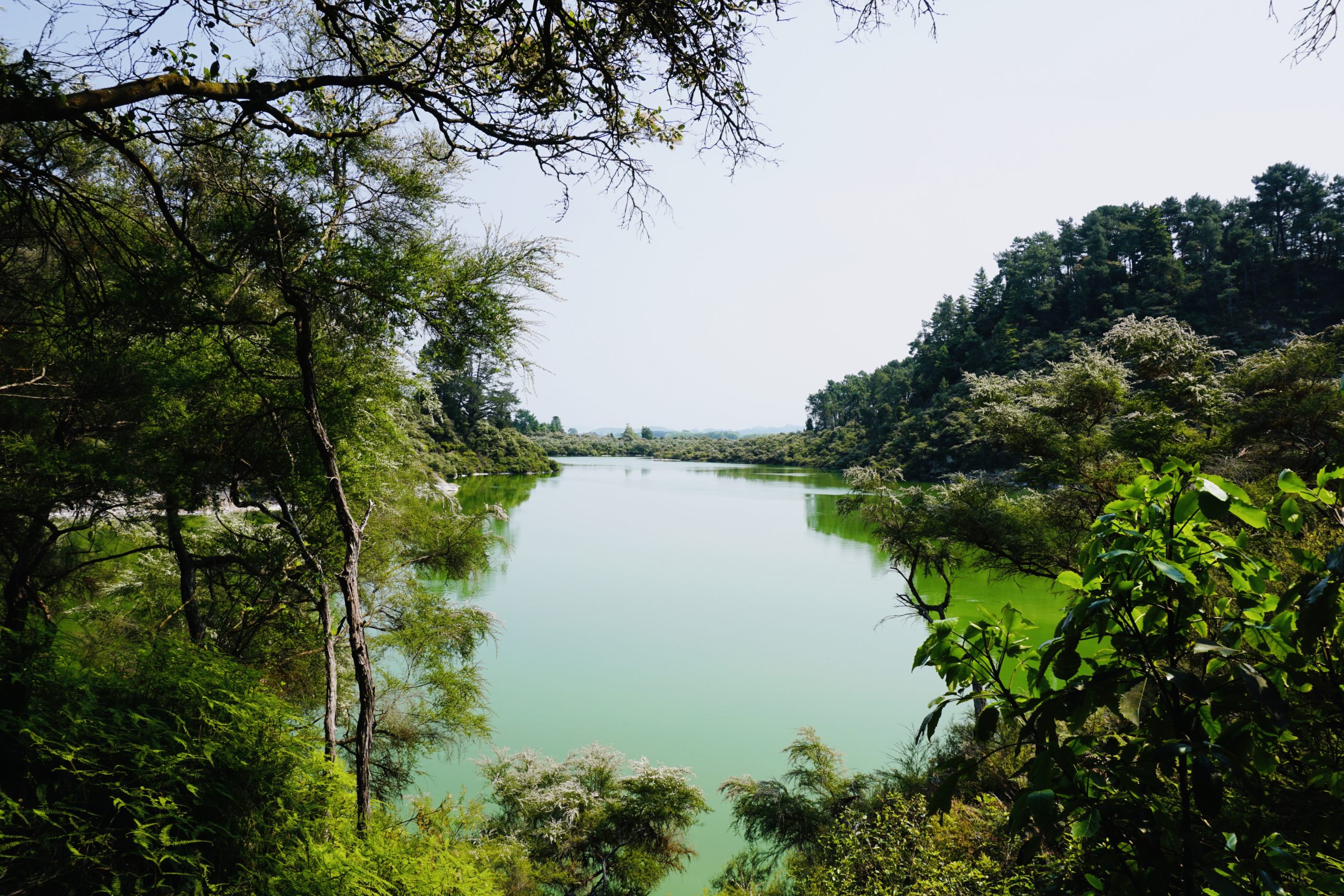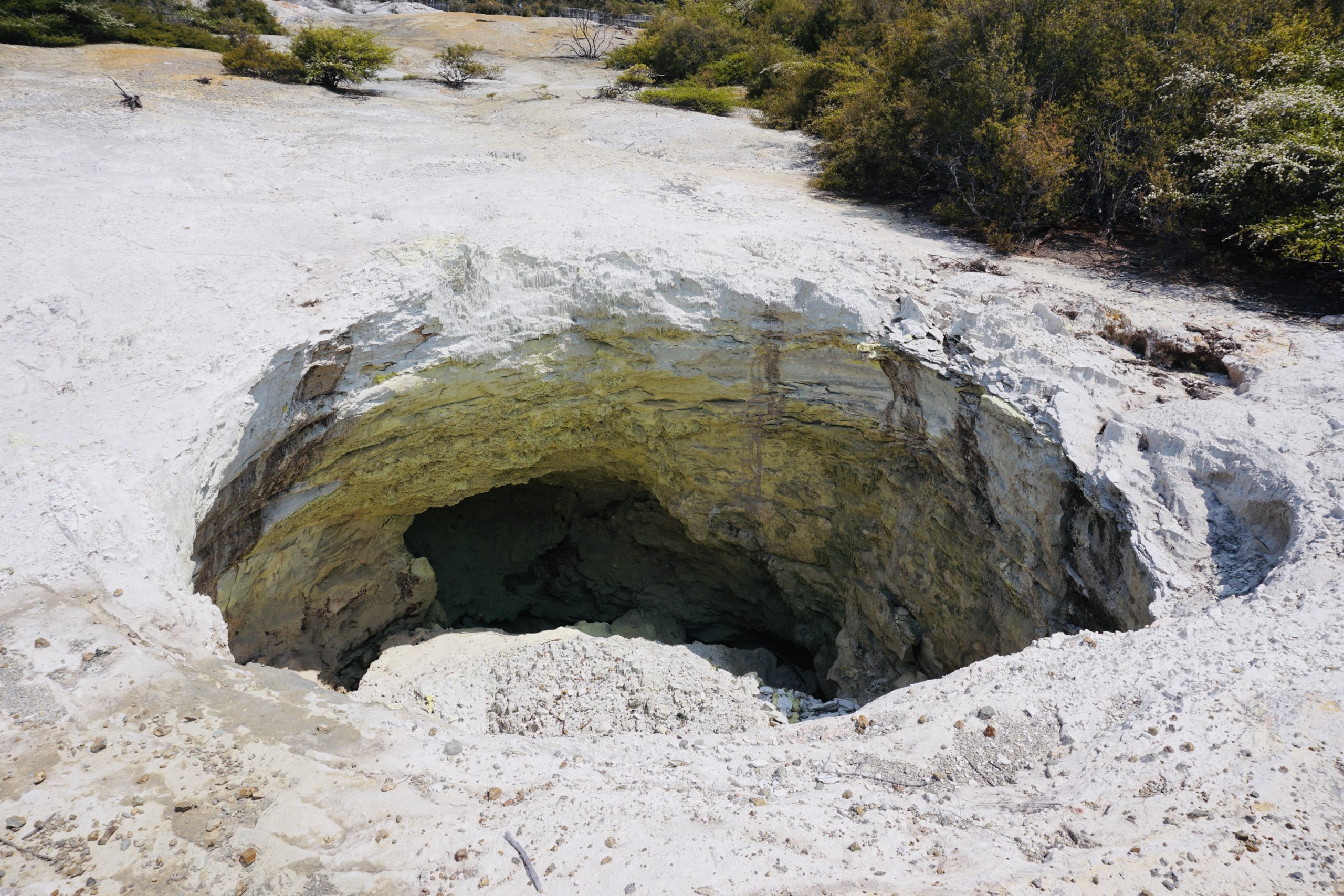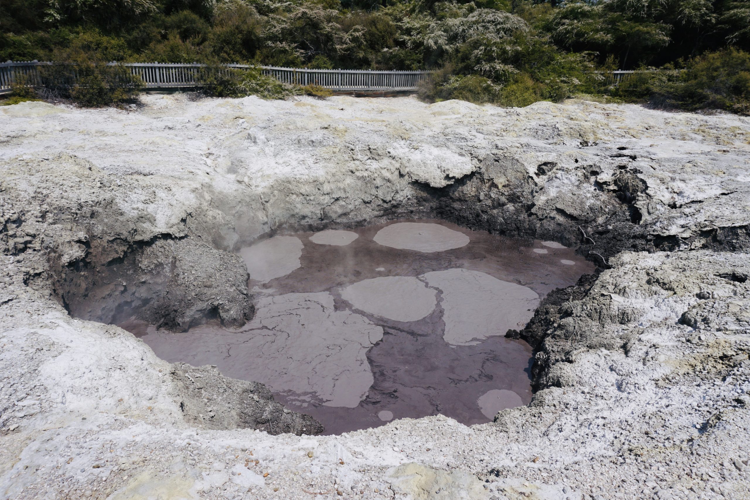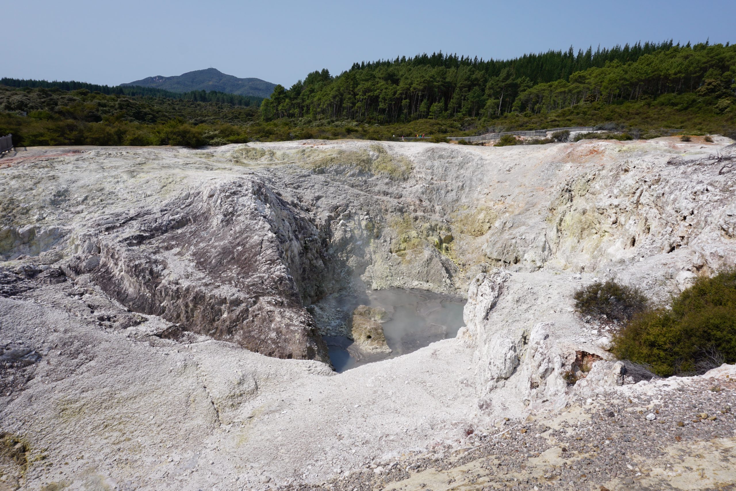 In der Campingplatzküche haben wir einen ganz netten Luxemburger kennengelernt, der Dieter gleich zu einem Guinness eingeladen hat. Aus dem Gespräch haben wir den Tipp bekommen nach Wai-o-Tapu zu fahren, dort kann man sehen, wie die Erde von unten aussieht, dass heißt Rohöl, Schwefel, Eisenoxid (verrostete Bäume), kochendes Wasser, blubbernder Matsch und vieles mehr.