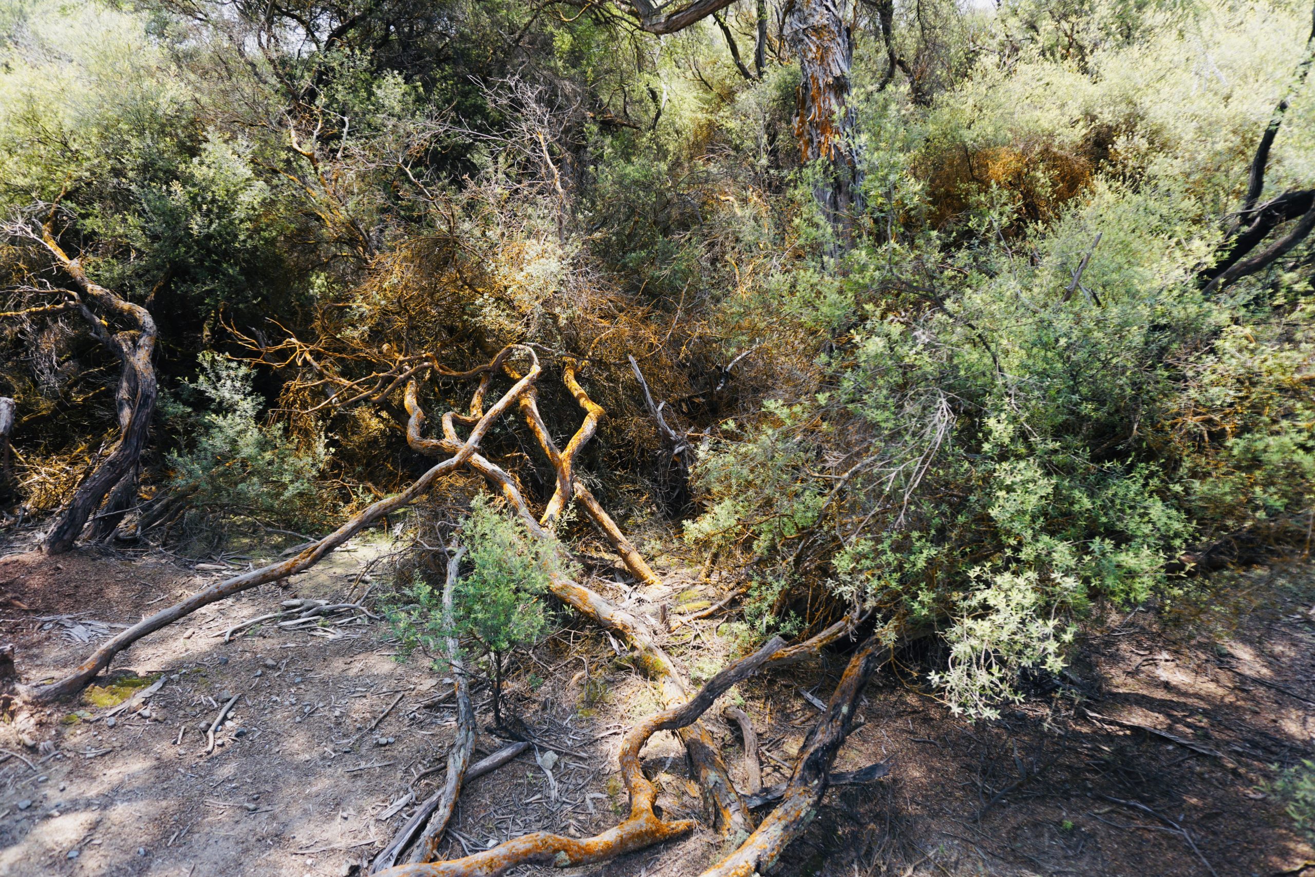 Am Ende des Wanderweges ist uns ein herrlich gelb strahlender See aufgefallen. Dieter rannte sofort hin und brüllte: das ist das was ich sehen wollte. Ein hochgradig saurer See (pH2).