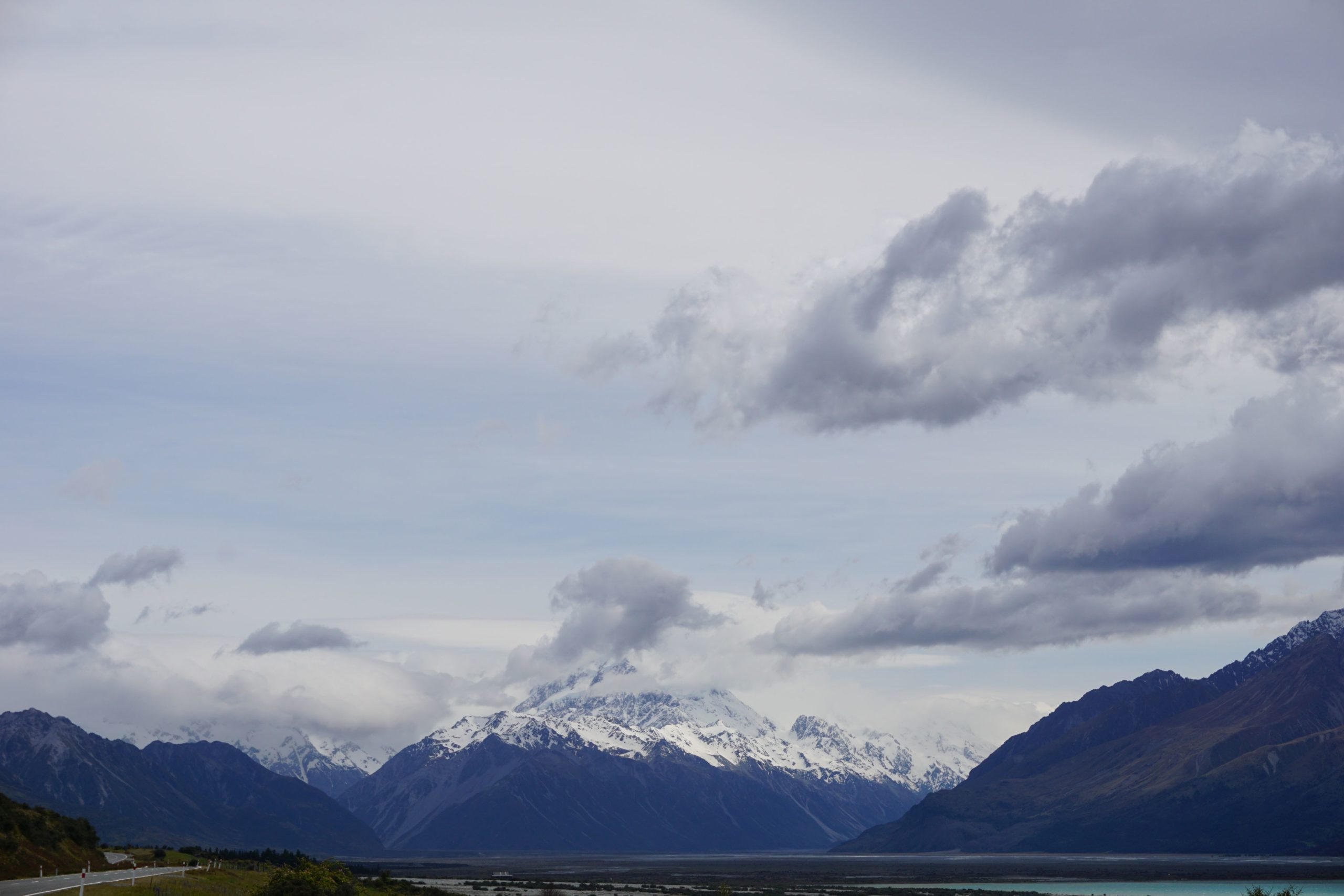 Am nächsten Tag ging es weiter zum Mt. Cook, leider mit wieder sehr miesem Wetter und sehr starkem Seitenwind…so trafen wir auch auf einen Camper, der neben der Straße lag…schade aber wir konnten nicht helfen.
