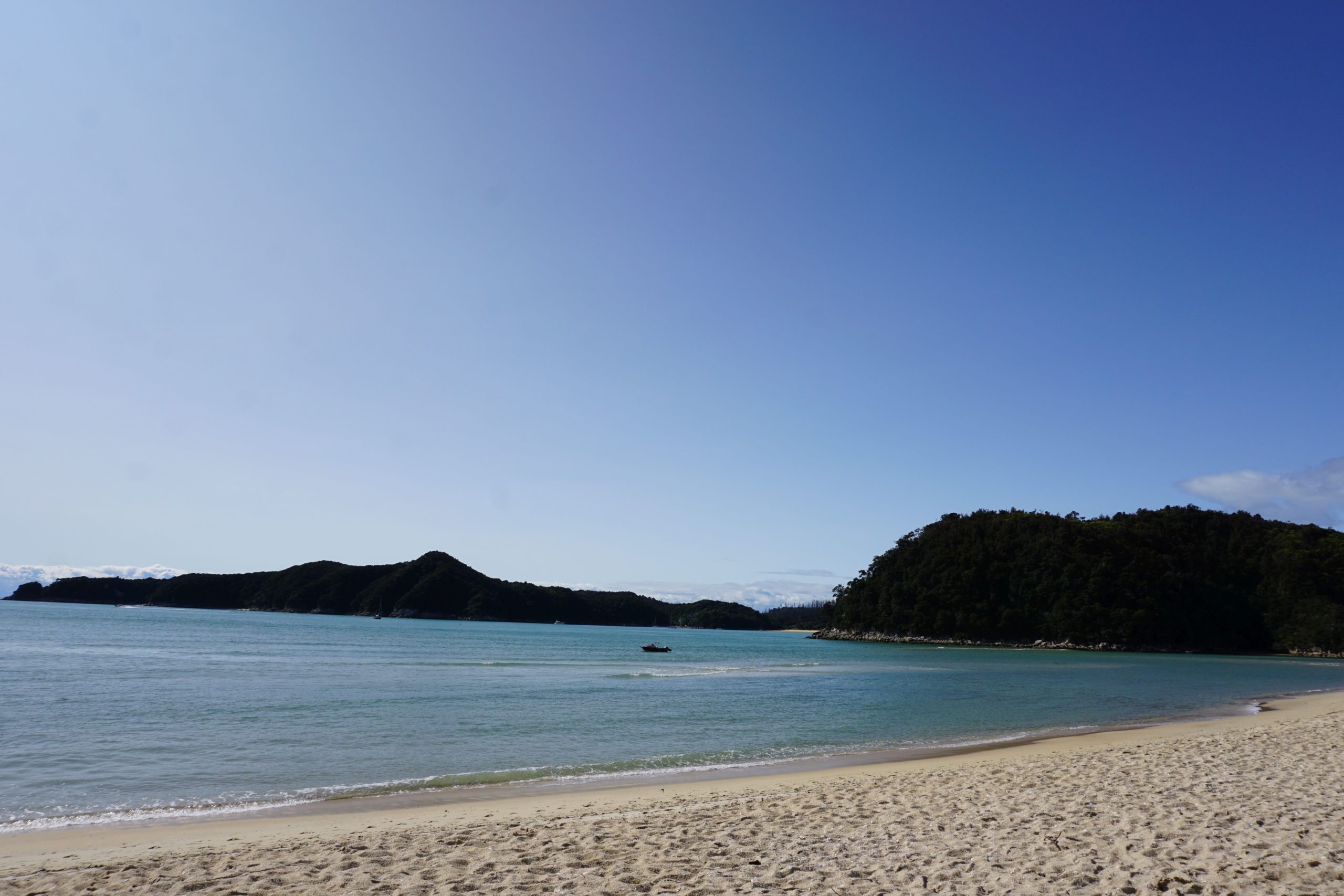 Am nächsten Morgen verschlug es uns ein paar Tage nach Marahau…Ziel: Eine schöne Wanderung im Abel Tasman machen. So haben wir uns morgens um neun direkt vom Campingplatz aus, in das Boot gesetzt und wir wurden von einem Traktor vom Campingplatz direkt ins Meer geschoben.