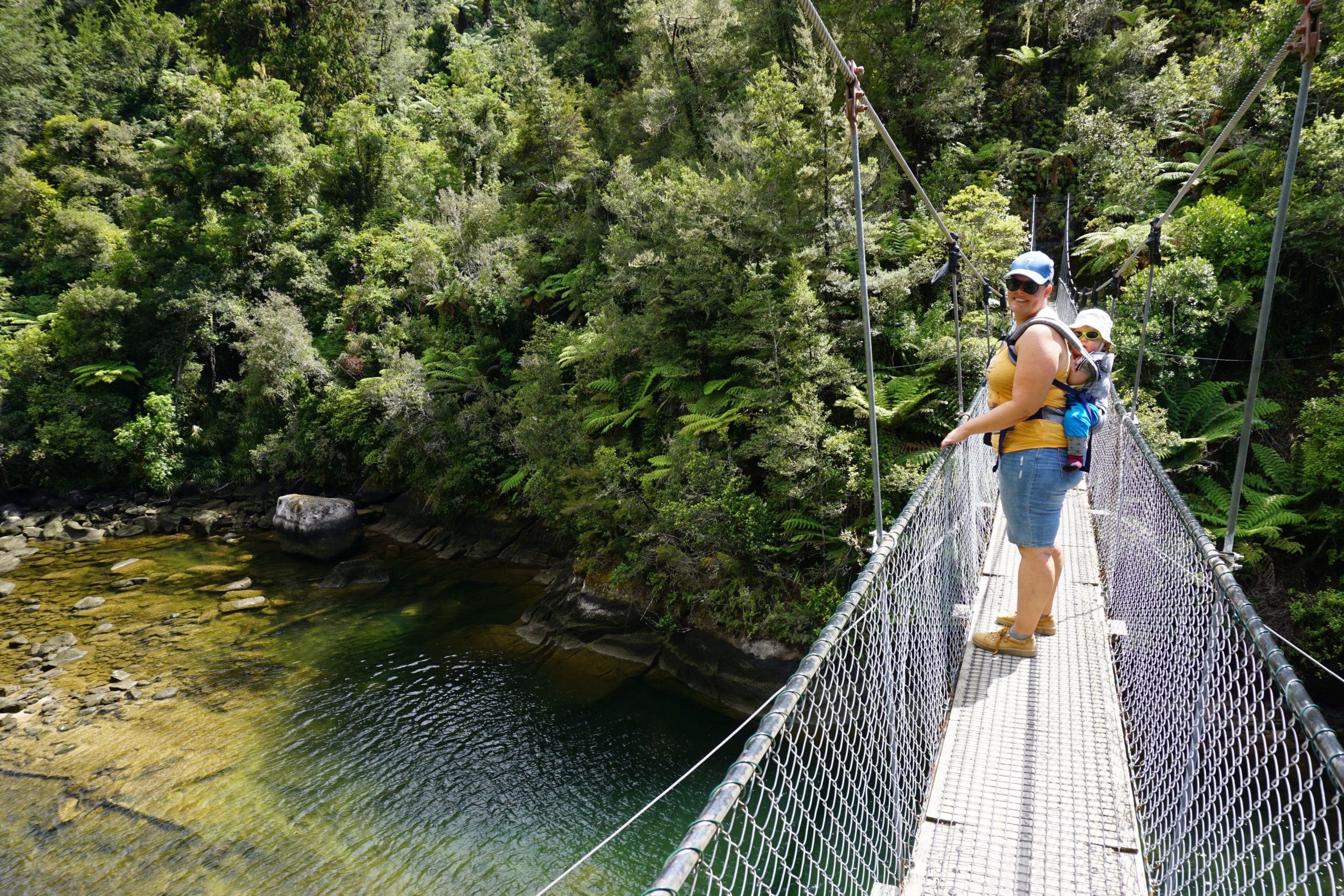 Ein weiteres Highlight der Wanderung war die Swingbridge. Dieses schwingte ordentlich mit, wenn man drüber gelaufen ist und man muss sagen, dass die Neuseeländer in ihrer Schilderkreativität besser sind als wir Deutschen.