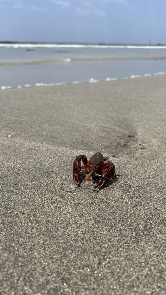 Es ist Mittag und wir lassen uns bei Ebbe am Strand treiben…und was entdecken wir im Sand…eine liebe Languste 😍 (es sollte nicht die einzige bleiben)